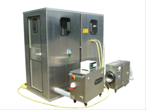 Die kontaminierte Luft muss mittels eines für die Grösse des Sanierungsbereiches erforderlichem UHG (600 bis 20000 m3/h) abgesaugt und durch ständig auszuwechselnde Spezialfilter gereinigt ins Freie geführt werden.
